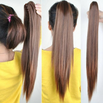 Another way to radically change your hairstyle with the same crab hair clip is to use a model with false hair. At the same time, the artificial “tail” should be matched to its own strands in tone. Attaching this, you can amaze your friends and acquaintances in a completely new way and with your thickened and overgrown curls.