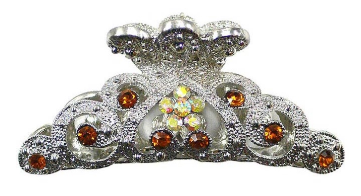 A bunch of smooth strands fixed with a metal crab with crystals or stones will look great too.