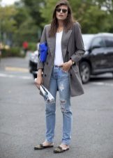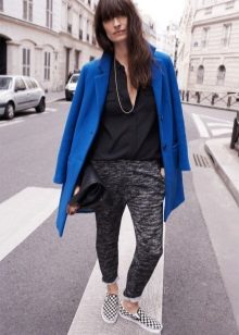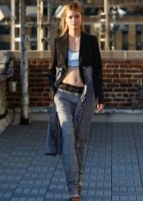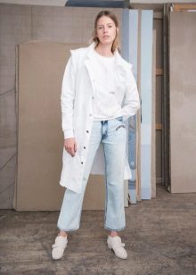 - jeans of any model will be a good addition to your long jacket;