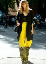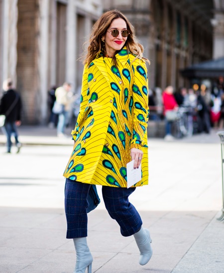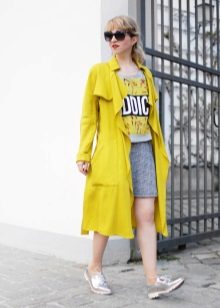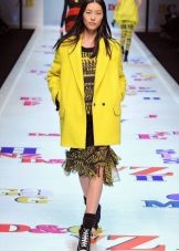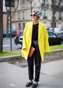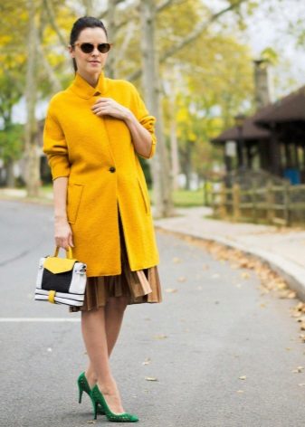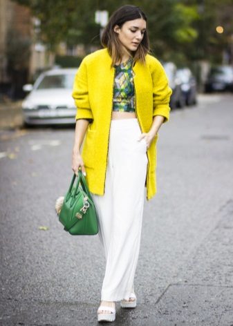 This is the color for experimentation. Putting on a yellow long jacket in combination with a green skirt, you become brighter. It is good to combine yellow with black, and with white and blue.