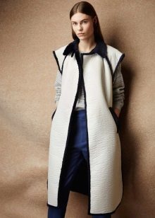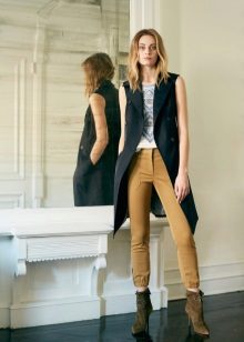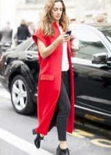 A long sleeveless jacket is another fashion trend this season. Such jackets are boldly worn at club parties. All due to the fact that the lack of sleeves makes your look less formal.