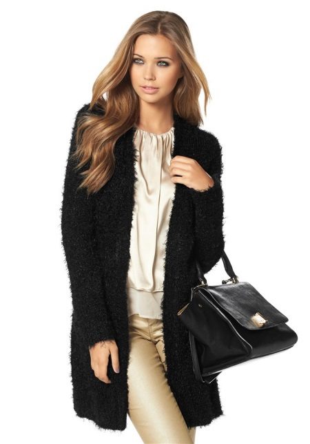 The trend of the upcoming fall-winter season is voluminous knitted cardigans, preferably from mohair. The combination of several colors in one thread allows you to be even brighter.