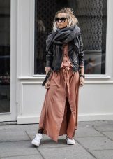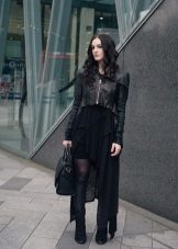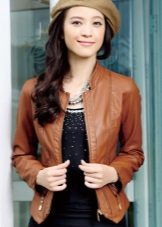 Leather jackets with ¾ sleeve shortened to length very in demand by fashionistas in the warm transitional season. Such models are successfully combined with dresses and straight or narrowed skirts.