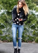 Among the variety of styles of leather jackets I want to note shortened model. It can be presented in a wide variety of styles - for example, a biker jacket or an ordinary casual bomber. In any case, such a jacket will very successfully emphasize your hips and buttocks, and the overall appearance due to such a top will look more seductive and stylish.