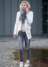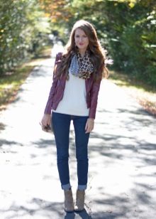 With skinny pants and skinny jeans you can put on a jacket a little loose style, large pockets and collars are allowed. In combination with a thin knit sweater and a voluminous matching scarf, you can create a fashionable look that will be a great option for everyday wear.