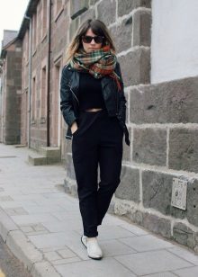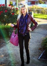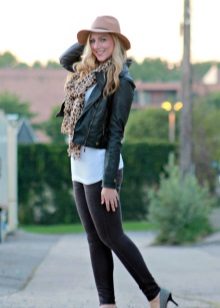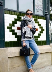 When choosing accessories for the ensemble with a leather jacket, pay attention to voluminous scarves. They perfectly emphasize the texture of the skin, add a special charm and sophistication to the image. Depending on the color of the scarf, you can visually adjust the shade of the skin of the face. If it is a little pale, you can try on an accessory of juicy green or pale pink. These shades “draw” a blush on the cheeks and hide traces of fatigue behind their color.