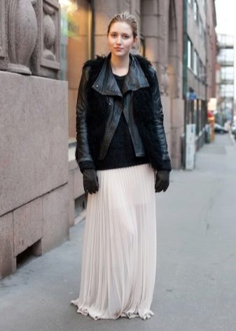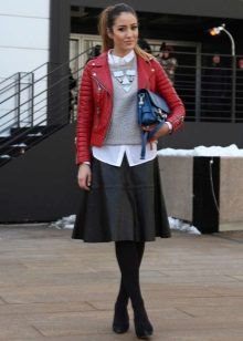 Bouffant skirts It is very successfully combined with a leather jacket in a romantic bow. What if complement the ensemble custom color shoes or with some kind of print, you can create a flirty image that does not lose its tenderness and femininity.