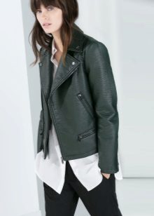 A leather substitute jacket is very difficult to distinguish from a natural product, it is much easier to care for and its cost allows you to purchase new things much more often than genuine leather. The diverse texture of leatherette allows fashionistas with different incomes to flaunt both in a crocodile jacket and in a patent jacket.