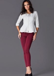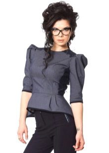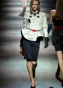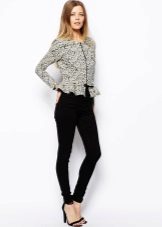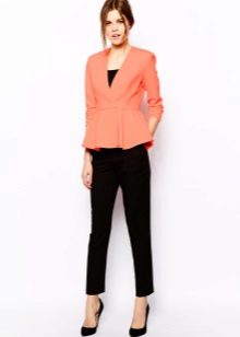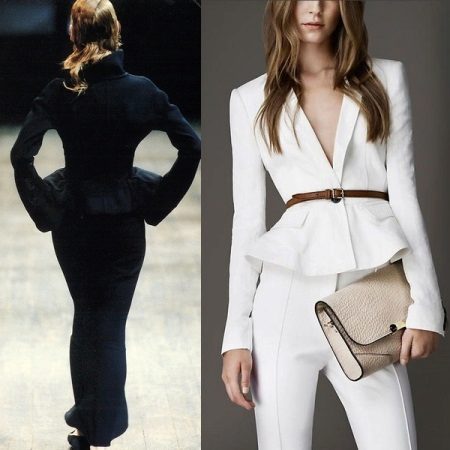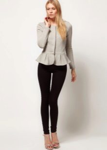 If a peplum jacket is part of a business suit, then the color scheme should be designed in a classic style. Black, white, light gray color is traditionally used for official costume. A jacket made in a combination of black and white looks very stylish and unusual.