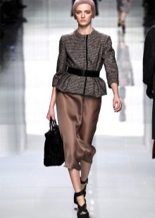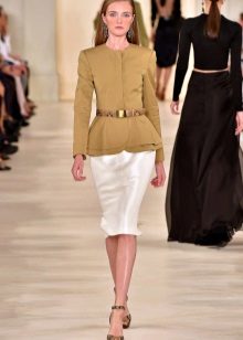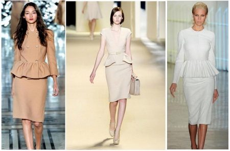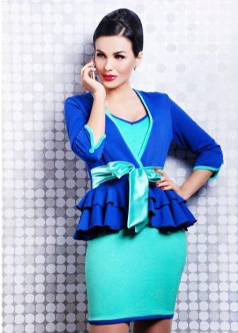 As a rule, a peplum is made to match the jacket. However, models with a basky in contrasting colors are very popular.