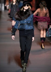 For a less formal style, such a jacket can be fitted with tight-fitting jeans of a classic color. Graceful boats are perfect for this kit.