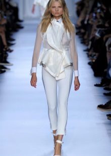 If you plan to use a jacket with a basque in a set of clothes, then, choosing the right shoe model, it is recommended to opt for models with high heels. Basque visually makes the figure heavier and makes it wider. The heel corrects the situation by visually lengthening the legs and making the silhouette more slender.