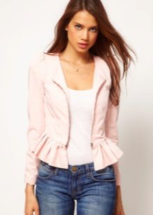 Basque can be very small, concise. This model is very suitable for miniature, fragile girls. A basque may be asymmetric, located along the entire bottom of the jacket or only at the back.