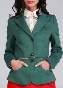 The jacket is associated primarily with a business suit. Therefore, it goes well with classic trousers, a strict dress and a straight skirt. Classic heeled shoes complement the austere look.