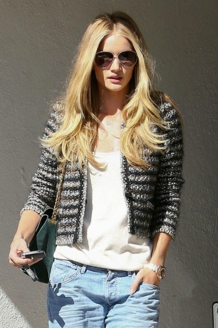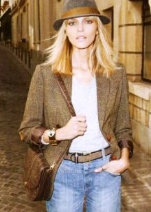 For an everyday look, you should wear a tweed jacket over a plain turtleneck or a thin sweater. Practical and comfortable jeans will be a great addition to a fashionable look for every day.