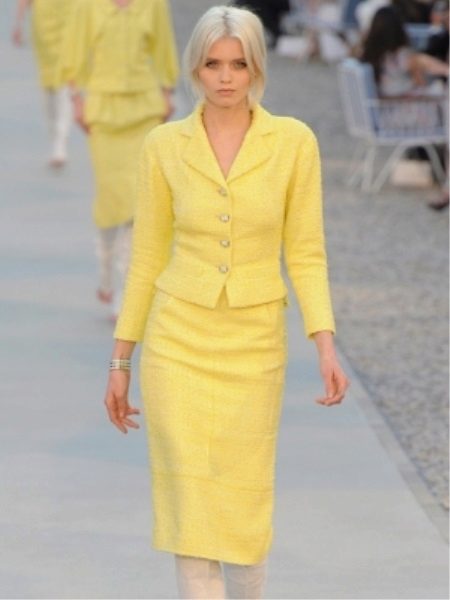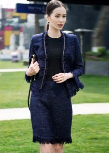 A black tweed jacket is considered a classic. It is often used to create an everyday look. To attract male attention, you should pay attention to the yellow tweed jacket and put on a yellow or black pencil with a tweed skirt.