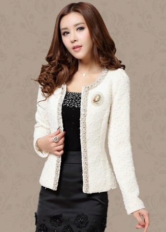 For a business look, you should combine a tweed jacket with a snow-white blouse or a classic-style shirt. The tandem of a shortened jacket with an airy dress looks elegant and simple. You can choose a model from chiffon, it will give an image of attractiveness and irresistibility.