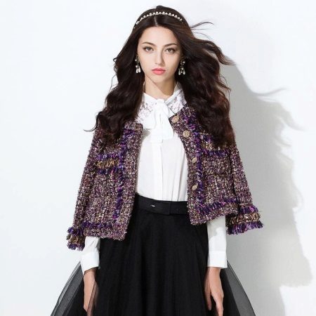 Each season, designers present new styles and models of tweed jackets, because they are always in trend. They offer different lengths, the shape of the collar or without it, and also decorate jackets with inserts from other fabrics.
