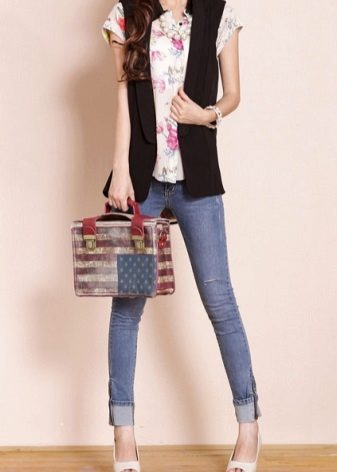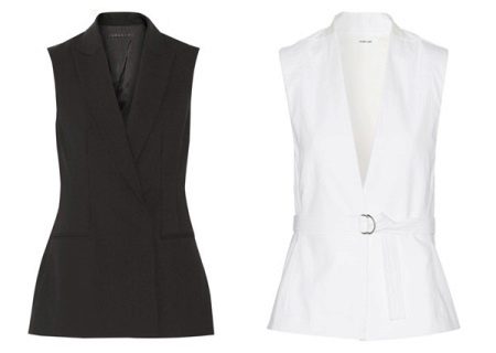 A brown, black, gray or purple sleeveless jacket can replace a classic office-style jacket with a lightweight blouse