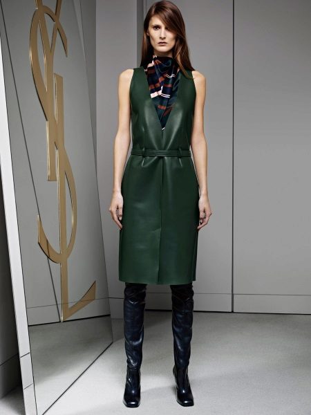 Green and its shades have always been and remain a chic color. So, for example, a green leather jacket on a belt from Yves Saint Laurent will make your mistress bright and unforgettable.