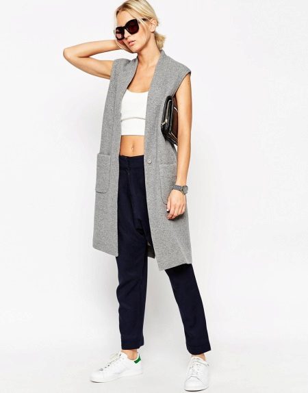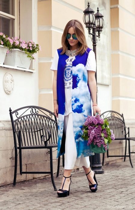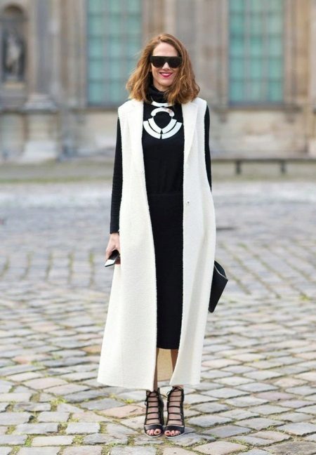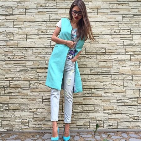Long sleeveless jackets will help to be effective and original. A wide variety of model range, color palette will impress many fashionistas.