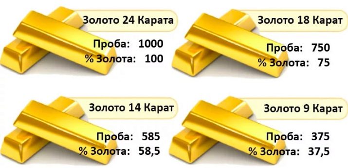 In the Russian Federation, 5 samples are standard. The 375th sample contains the least amount of precious metal - 37.5%, and 62.5% is accounted for by additives.The largest 999 sample contains 99.9% gold. Such a composition is called pure gold.