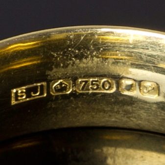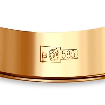 Solid gold jewelry is not sold in stores. In each alloy, gold is combined with other metals. This is done so that gold is practical, does not lose shape and remains strong. To determine the proportion of pure gold in the purchased jewelry, an imprint of the mark is located on its inner side, it is called a breakdown. Sometimes the decoration may indicate the percentage of the sample.