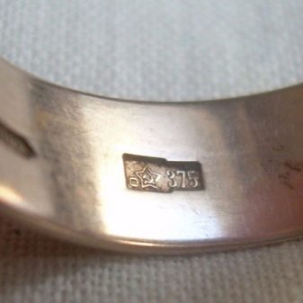 Sample 375 It has a composition with a small part of gold - only 37.5%, that is, 375 parts of pure gold, which corresponds to 9 carats, per 1000 parts of the alloy.Such compositions have a drawback - due to the formation of silver sulfide (Ag2S) darken in air.