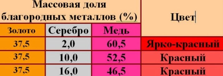 - so that the shade is red, a ligature of 52.5% copper and 10% silver is suitable;