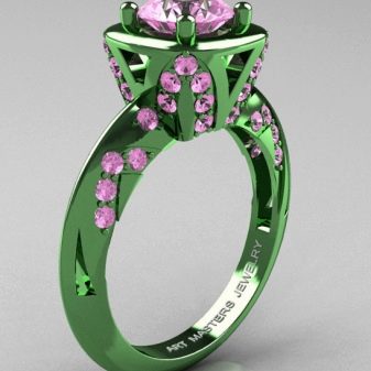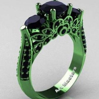 If green gold is characterized by a saturated hue, which is achieved by the addition of special substances, it will be strong, but fragile. Therefore, to create a one-piece decoration, it will not work. All components are made by casting and are used as inserts, overlays.