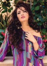 There is also room for animal prints in the wardrobe of the actress and model Shahi. Let's consider an elegant summer dress in a floor of coloring "under a zebra". Sarah dilutes the boring black and white gamut with shiny accessories: silver overflows from shoes and a bracelet are enhanced by the pearl glow of earrings and rings.