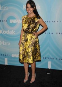 Sometimes even such feminine ladies like Sarah Shahi want a little brutality. And then such cute images are born, in which the dress is adjacent to the coarse shoes. By the way, building such an ensemble successfully is also not easy. Here, everything seems to be clear: Sarah chose the most closed dress. But! It is necessary to change its color, material - and the image becomes dull, like a burqa. But the impeccable taste of Sarah helped her choose the right color and texture. And this dress, playing with light from spotlights aimed at Sarah, takes on different shades at every step of the actress: it can be olive or even khaki, which justifies the presence of coarse shoes in the ensemble - a little military in a women's outfit, today it is still relevant.