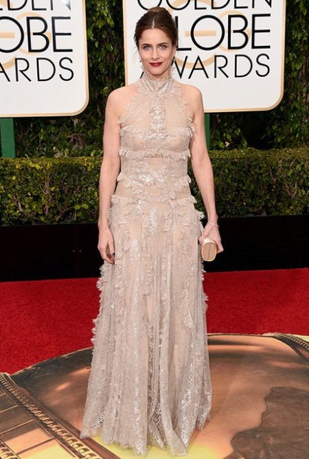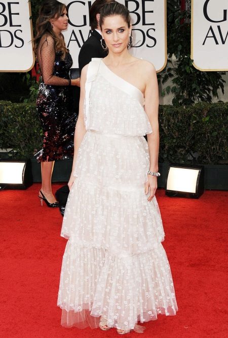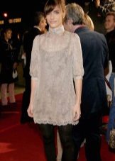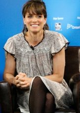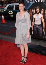 But it cannot be said that such a hairstyle is not relevant at a social event. For example, in the next outfit, she looks very appropriate. But the outfit itself caused a lot of controversy among fashion critics. Some called this dress from Marc Jacobs a failure, others find this look airy and charming. Perhaps the style is really not perfect. But the idea itself is very good: delicate lace, tulle, satin ribbons - all components are perfectly combined with each other. Perhaps, the bodice of the dress made in a different style would make the composition more elegant. One way or another, Amanda Peet again reminds us of a fairytale princess, and spectacular make-up, stylish jewelry and golden sandals only reinforce this impression.
