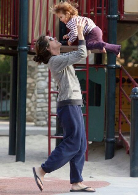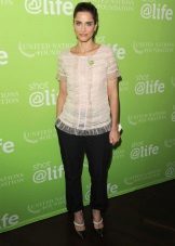 It is always very curious to watch how the outfits of Hollywood actresses that they choose for their everyday life and for social events vary. So, in everyday worries, for example, for walking with children, Amanda Peet always chooses very practical, but stylish outfits. Soft sports pants of banana style, a comfortable sweatshirt and simple slates are the favorite choice of a stylish mom for every day.