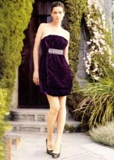 The following example is also full of femininity and grace. The combination of black and lavender is a trendy combination of colors. Here we again see an intricate cut, floor length is the best batch for open shoulders. Hair smoothly combed into a bun completes the image, giving it restrained features.