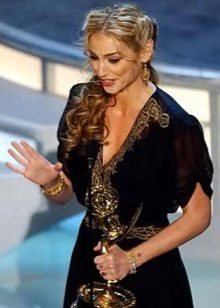 One of the most spectacular images of Drea for her entire career is a luxurious black dress. It combines the maximum length and shockingly extensive and large cuts, long cuts and a combination of dense velvet with translucent fabrics. In this image, the actress demonstrates an incredible femininity: not only a dress, but also a hairstyle and makeup - everything exudes an incredible appeal and sensuality of the fatal beauty.