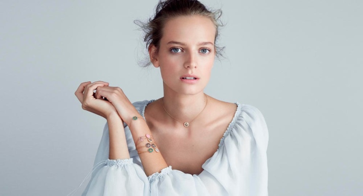 The main advantage of Dior jewelry, whether it be earrings or sunglasses, is the decoration of each product with iridescent rock crystal. Dior discovered the effect of such a decorative technique along with Swarovski back in 1955. Today, Victoria de Castellan is responsible for creating the brand’s unique jewelry.