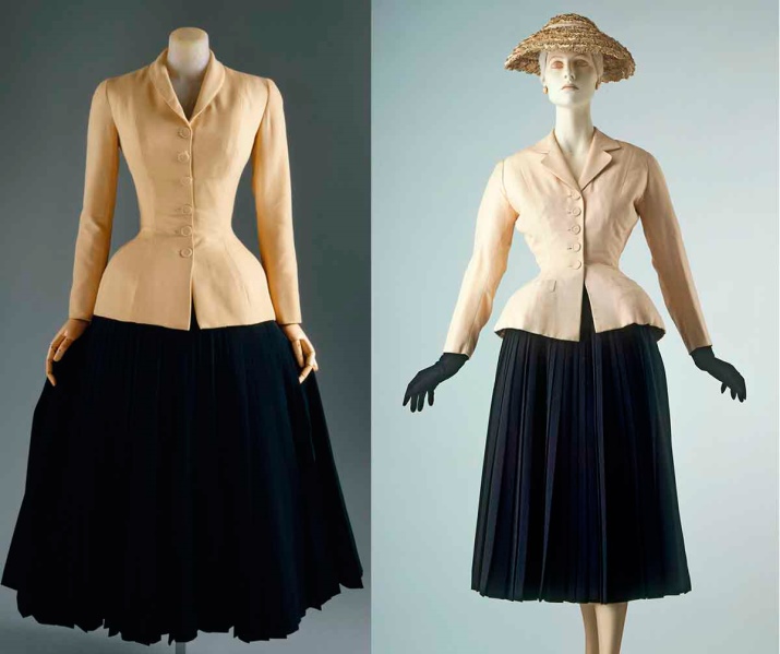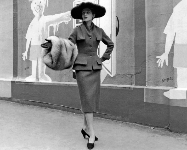 A shortened, tight-fitting model with a basque along the waist line was sewn, as a rule, from satin or silk. Involuntarily, Dior created an alternative to the little black Chanel dress in the form of its complete opposite - these were cocktail costumes that many ladies simply adored in the 40-50s. For a cocktail, a bar jacket should be worn with tight trousers or with another invention of Christian ...