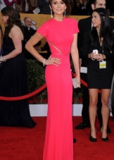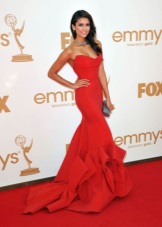 Almost any shade of red is another win-win option for brunettes. Nina embodies in her images for the carpet a graceful red dress on the floor with piquant necklines and a neckline.