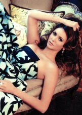 Pale blue and doll-lush outfits - this is just what very slender, burning brunette. Nina prefers both monophonic options and models decorated with an unobtrusive and stylish print.