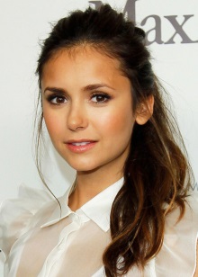 - No hairdryer or curling iron. If Nina Dobrev is not on the set, she dries her hair exclusively in a natural way. The curls need to be gently patted with a towel and wait until they dry out a little. After about 15-20 minutes, you can slightly comb them with a comb with rare teeth, asking them the direction and laying. You can use the massage brush only when the hair is completely dry.