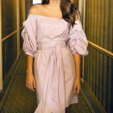 The “linen” trend - a combination dress - Vega wears a little differently anyway. Her vision of such a thing is the indispensable presence of shine in the fabric. This slightly translucent material resembles a scattering of precious stones over the body of a model. Well, the beauty queen has a right to it!