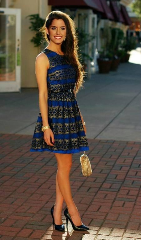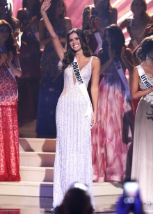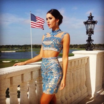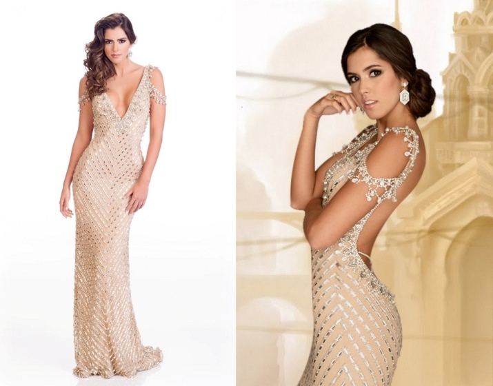 The magnificent dress in which Miss Columbia 2013 flaunted will be to the taste of any connoisseur of chic evening dresses. A beige dress embroidered with sparkling stones, a seductive fit (the back is fully open), a unique sleeve design - in this outfit, any girl will feel like a beauty queen.