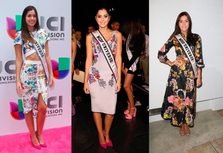 In conclusion, I would like to consider several options for how to wear a floral print according to the winner of the World Beauty Contest. Paulina offers several types of original floral patterns and, by her own example, shows that such ornaments can look organically of almost any size and color. The main thing is to make onions correctly.