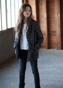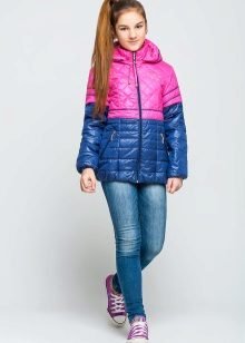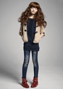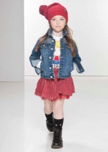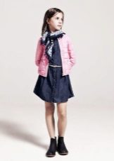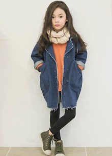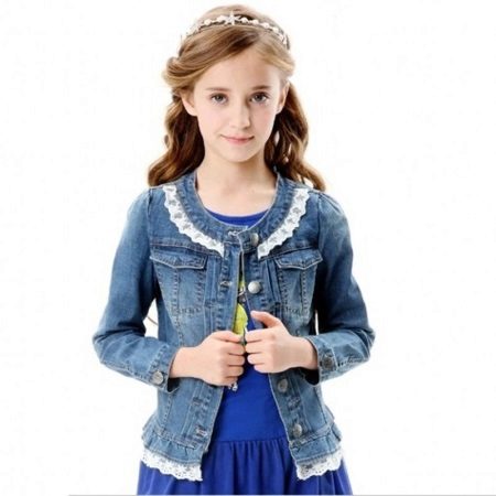 El denim es un material igualmente popular para coser chaquetas para niñas. Muy a menudo, el denim se usa para crear un guardarropa primavera-otoño. Tiene características de alta resistencia y es perfecto para adaptar una amplia variedad de modelos, desde una chaqueta corta hasta una parka de mezclilla.