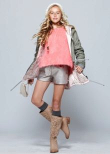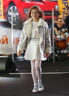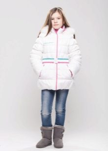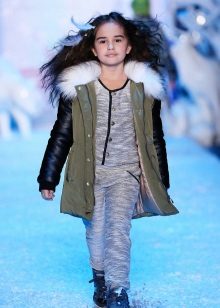 Este material es adecuado incluso para los niños más pequeños. En este caso, no debe elegir estilos demasiado complejos y "adultos", se debe dar preferencia a las chaquetas del corte más simple.