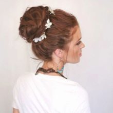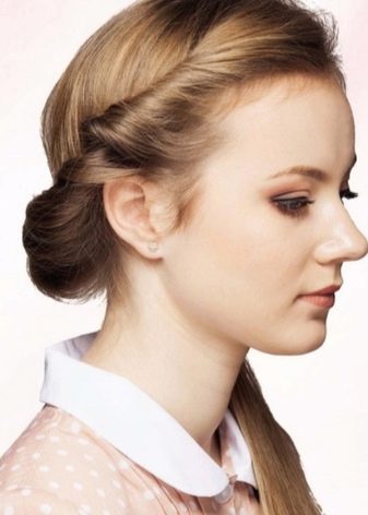 - El cabello en la parte superior debe peinarse y recogerse fácilmente con un caracol, dejando intacta la capa superior. Arreglamos todo con horquillas finas o invisibles.