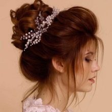 - Tan pronto como todo el cabello esté rizado, debe dibujar una separación (lateral o central, de su elección). El resultado obtenido se fija con barniz. No use una gran cantidad de esta herramienta, de lo contrario el peinado perderá su esplendor y atractivo. Esta versión de peinados es perfecta para la celebración de una boda. La imagen se puede complementar con una diadema y otras joyas.