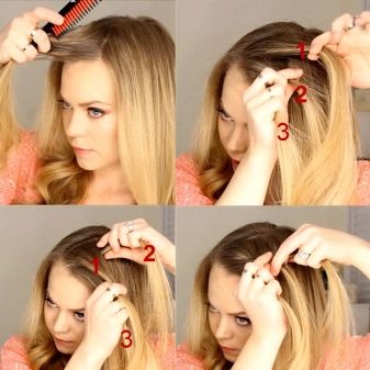 - dos mechones de los lados derecho e izquierdo deben peinarse con cuidado, levantarse y apuñalarse por la espalda; esto agregará volumen adicional al peinado.
