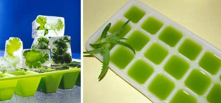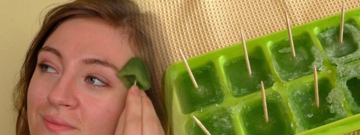 La opción más común es lavar con cubitos de pepino. El pepino, como el aloe, se ha considerado beneficioso para la cara. El hielo está hecho del jugo de estos ingredientes. Algunos lo diluyen con agua para aumentar las porciones. Tales formulaciones de baño frío aliviarán la descamación y ayudarán a sanar las pequeñas heridas.
